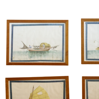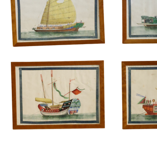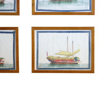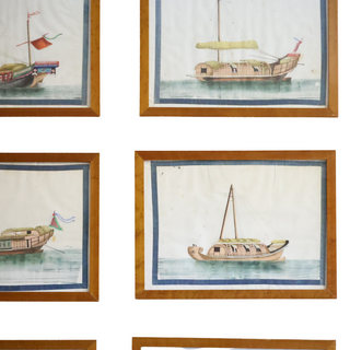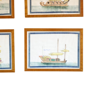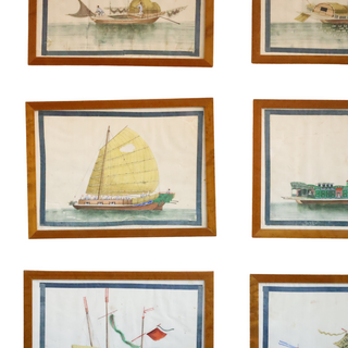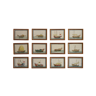 - 1850 Framed Chinese Rice Paper Sailing Art (Set of 12)