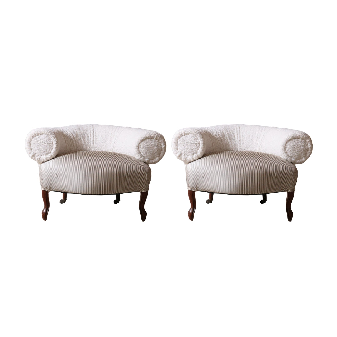 This pair of 1920s French Cocktail Chairs offers a refined blend of vintage charm and updated sophistication. The sculptural frames are reimagined with a soft, snowy white fabric on the backs and a striking black-and-white silk stripe on the seats, creating a bold yet balanced contrast. Thoughtfully reupholstered with luxurious textures and tailored details, these chairs bring elegance and visual interest to any setting.