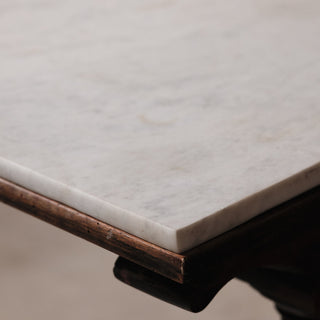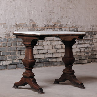 Circa 19th-century side table crafted from walnut and topped with white marble. With its classic proportions and warm patina, this versatile piece adds timeless elegance to bedrooms, living spaces, or hallways.