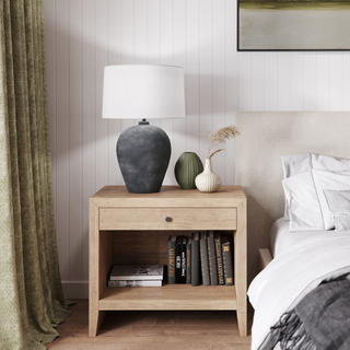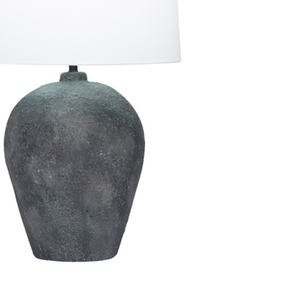 The Leigh Table Lamp blends rustic texture with modern refinement, offering both sculptural beauty and functional lighting. Its ceramic base features a dark, textured finish that brings depth and character, while the crisp white lampshade provides a clean, balanced contrast. Designed to elevate both contemporary and transitional interiors, this lamp adds understated elegance to living rooms, bedrooms, or entryways.