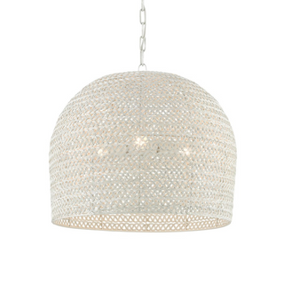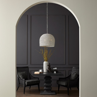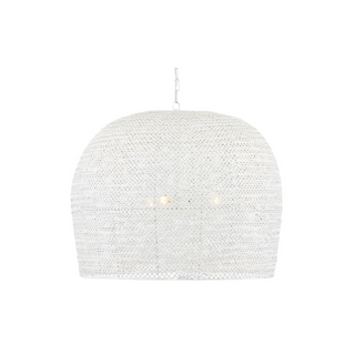 The Piero Chandelier captures the look of handwoven natural fibers but is masterfully crafted from iron in a crisp white finish. Its airy, organic silhouette brings artisanal texture to any room, while the durable material ensures lasting quality. When illuminated, the chandelier casts beautiful, textural patterns across surrounding surfaces, enhancing the atmosphere with warmth and dimension. Available in medium and large sizes, the Piero offers versatile styling for dining rooms, entryways, or living spaces.