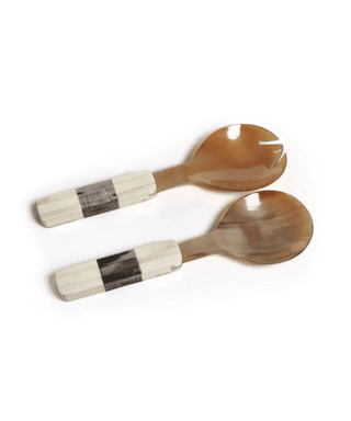 Salad Server - Variegated Horn With Bone Etched Handle (Set of 2)