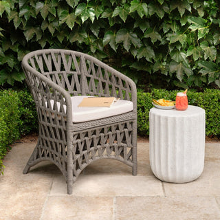 The Uriah Stool brings an artisanal edge to modern seating with its rugged yet refined aesthetic. Crafted from textured ironstone, each piece is shaped with scalloped edges and finished using a reactive glazing technique that ensures unique variations in tone and surface. The result is a stool that feels both organic and sculptural, adding depth and character to any interior.